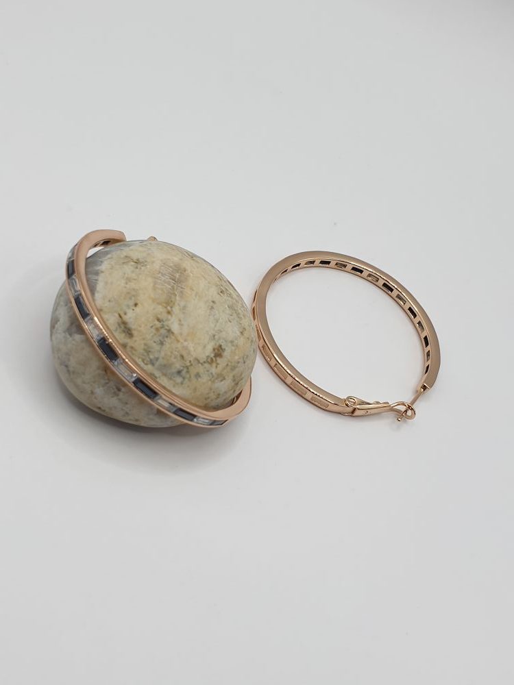 Boucles d’oreilles , élégantes dans le ton or, et habillé de joli forme originale ronde, rare design, asserties de petites pierres blanches & noires en zirconium vous assure un quotidien tout en beauté.