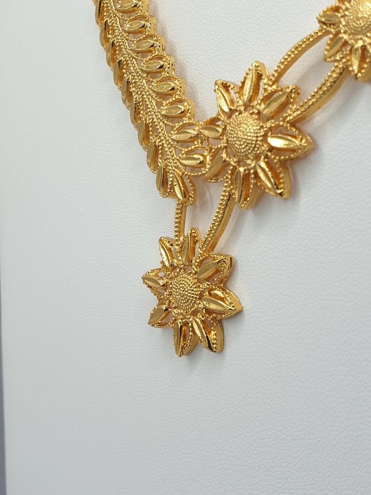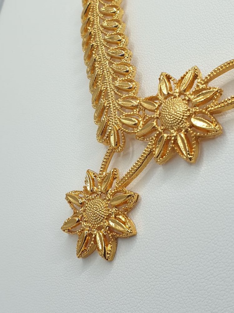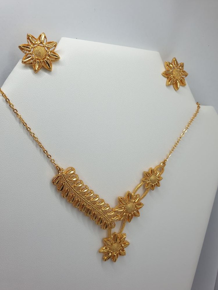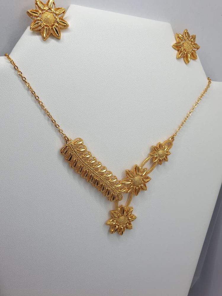 Collier & boucles d’oreilles , élégants dans le ton or, et habillé de joli forme ethnique, design asserti original & rare de qualité , vous assure une cérémonie tout en beauté.
