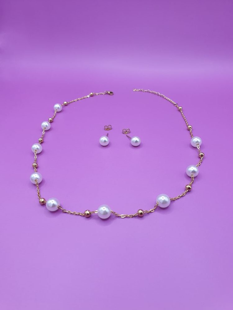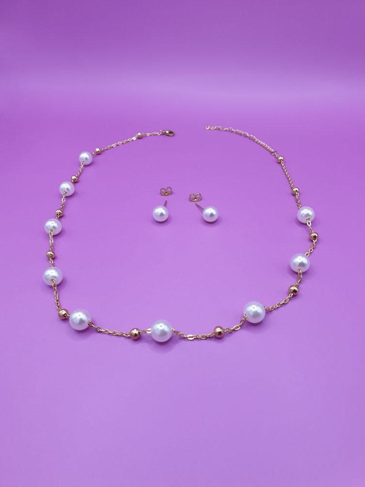 Collier & boucles d’oreilles , élégants dans le ton or, et habillé de joli forme ethnique, design asserti de petites perles en plastic et des petites boules en métal , vous assure une cérémonie tout en beauté.