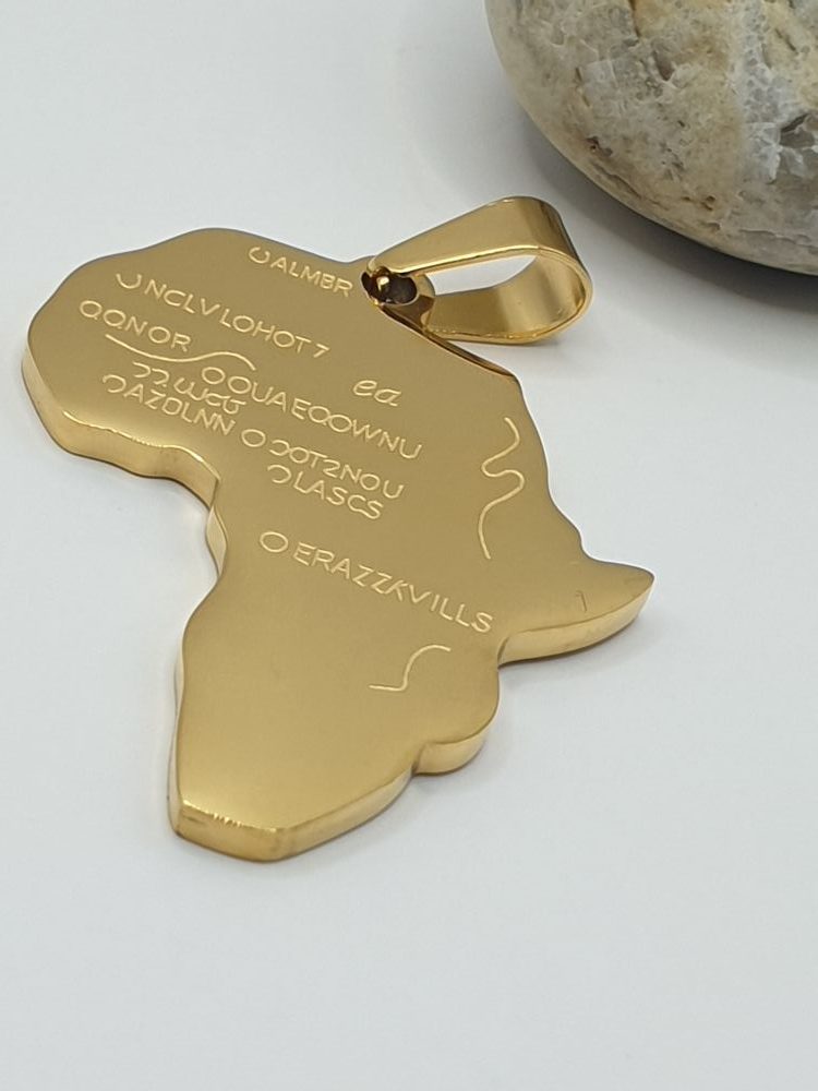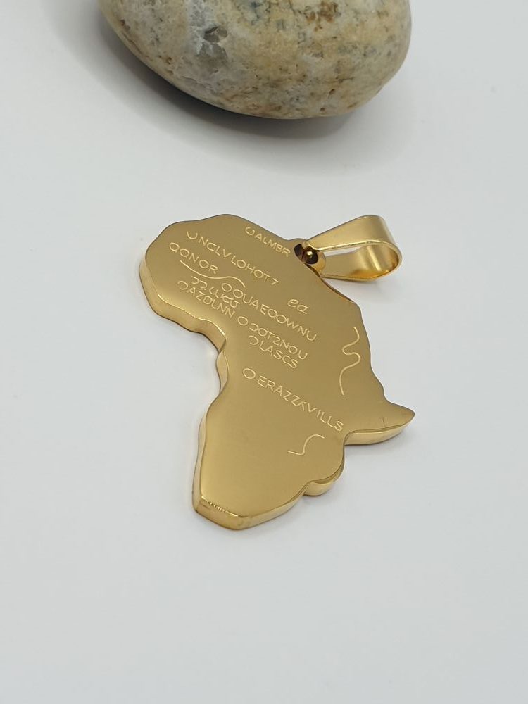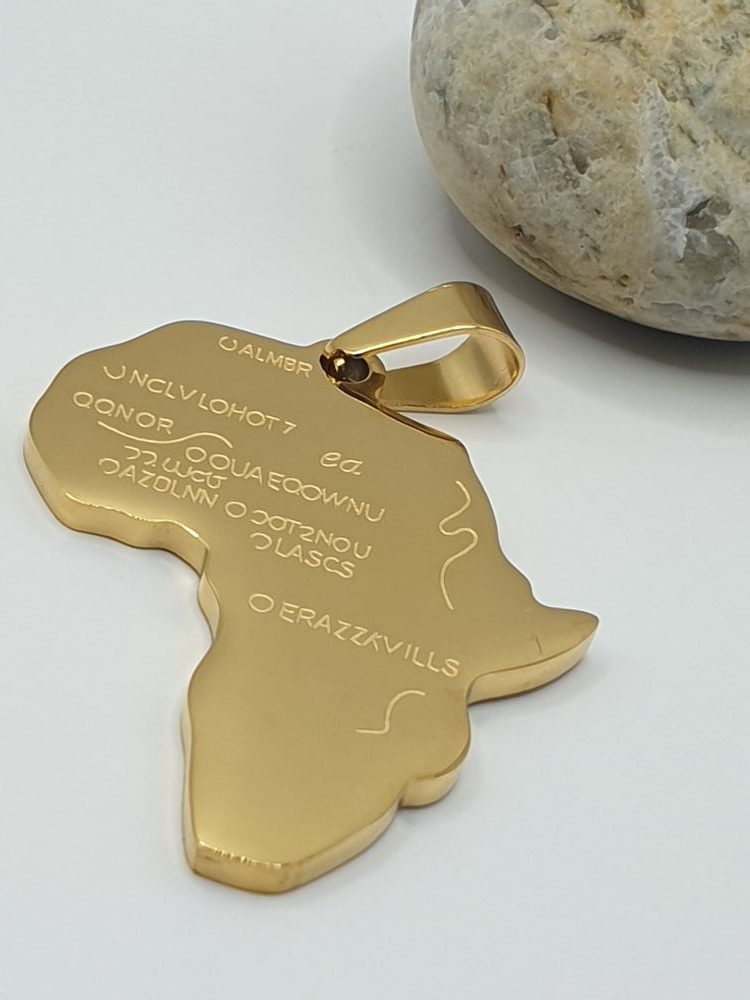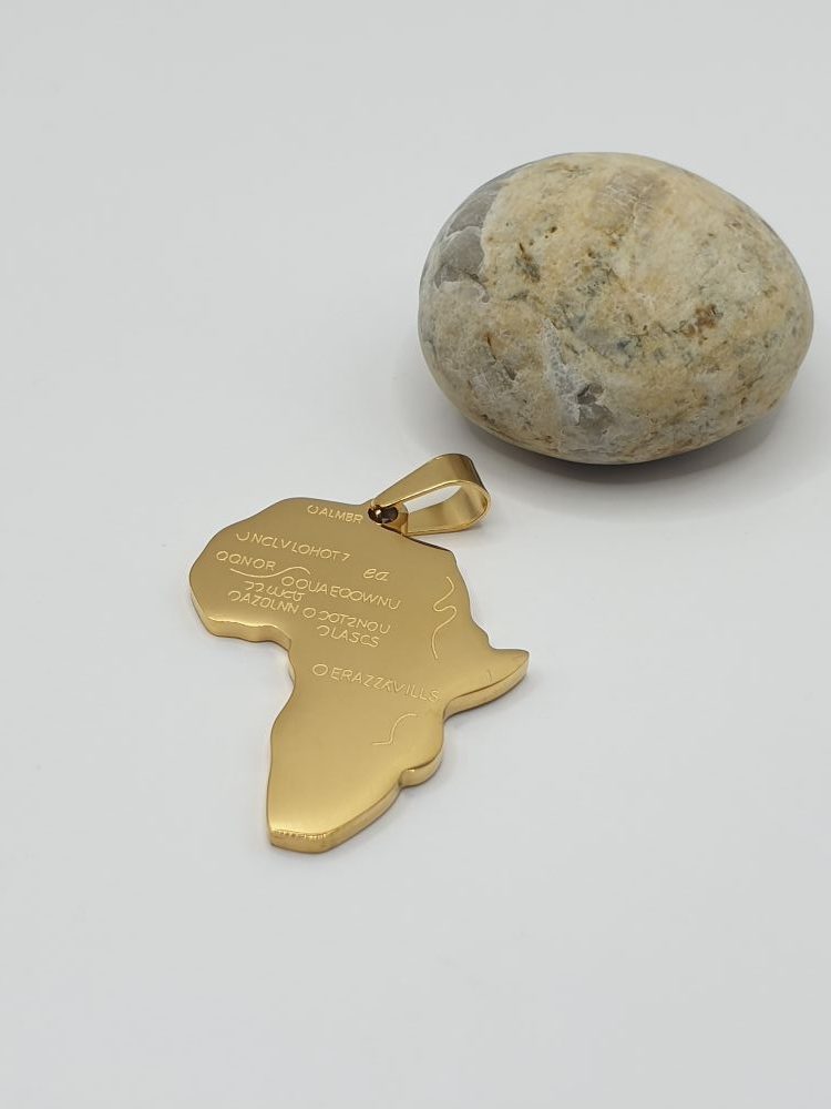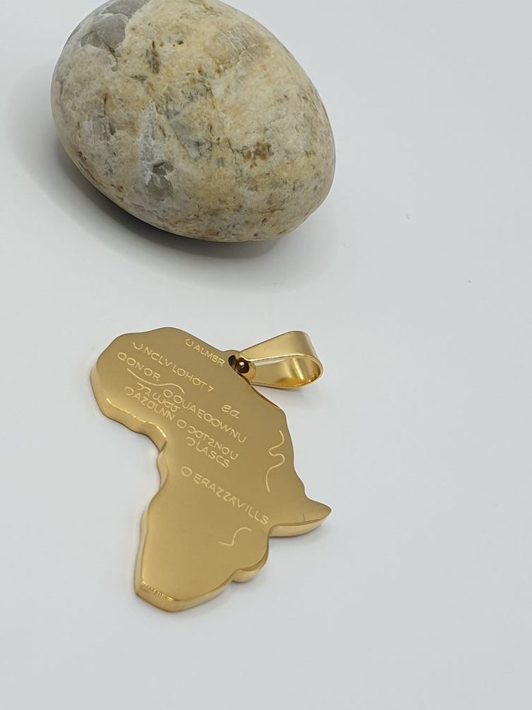 Pendentif Afrique, élégant dans le ton or, et habillé de jolie forme carte, vous assure un quotidien tout en beauté